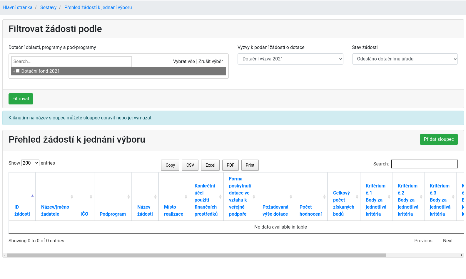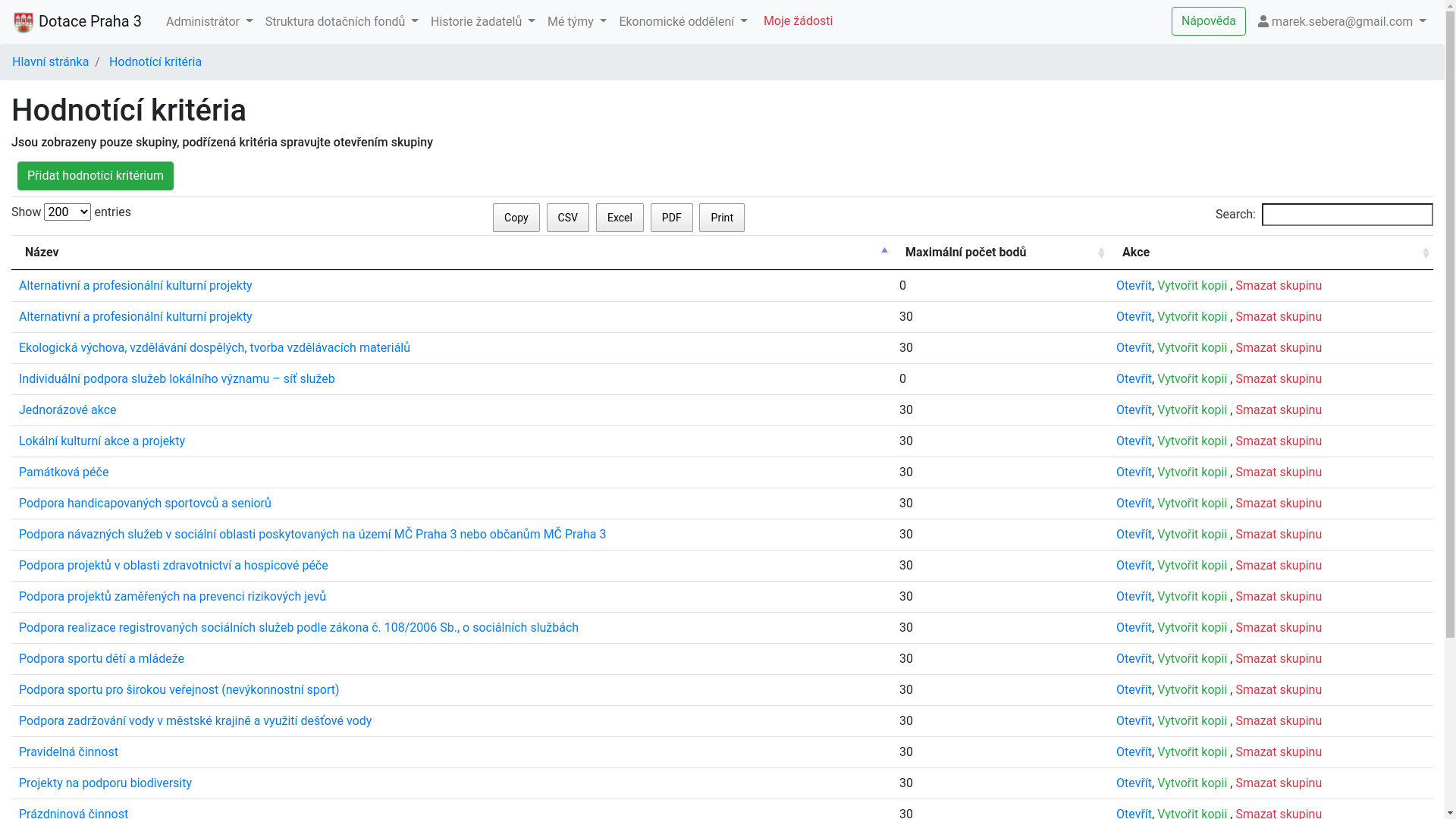 Hodnocení žádosti Nepovinný Tým: Hodnocení Žádostí Pokud chcete, můžete v jednotlivých programech žádosti hodnotit dle stanovených bodových kritérií, výsledek hodnocení pak může být podkladem pro další jednání dotačních orgánů.