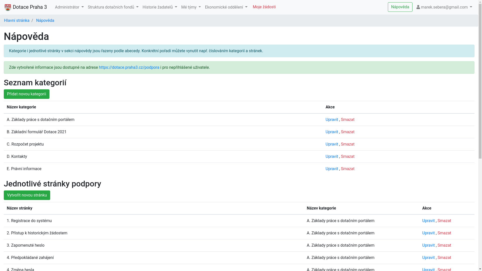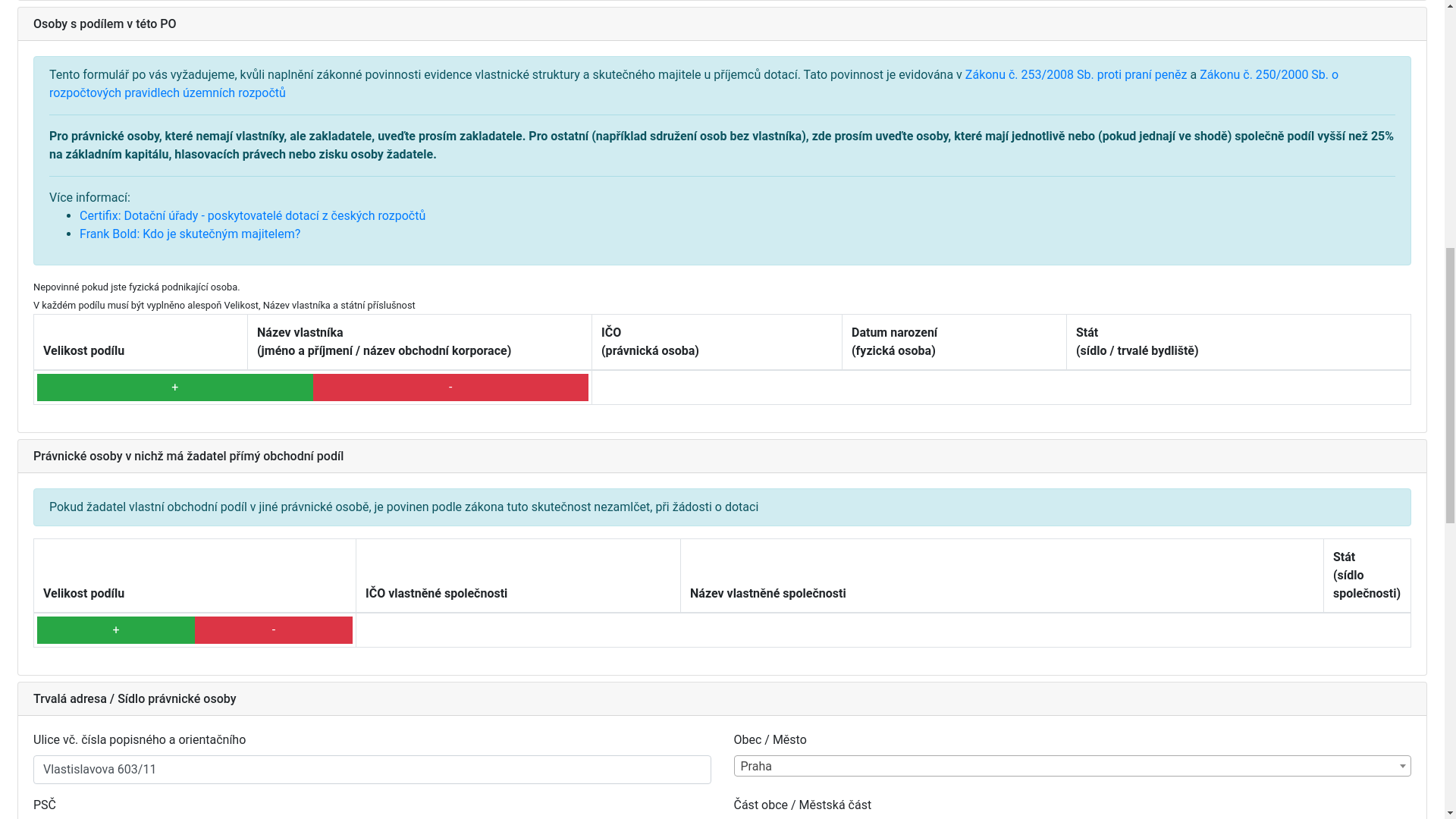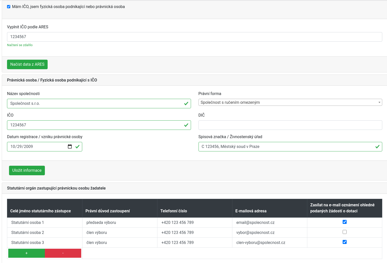 • Možnost úpravy osobních a kontaktních údajů žadatele.